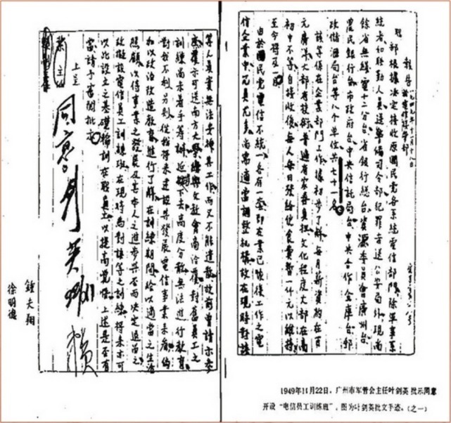 叶剑英元帅批示开设“电信员工训练班”